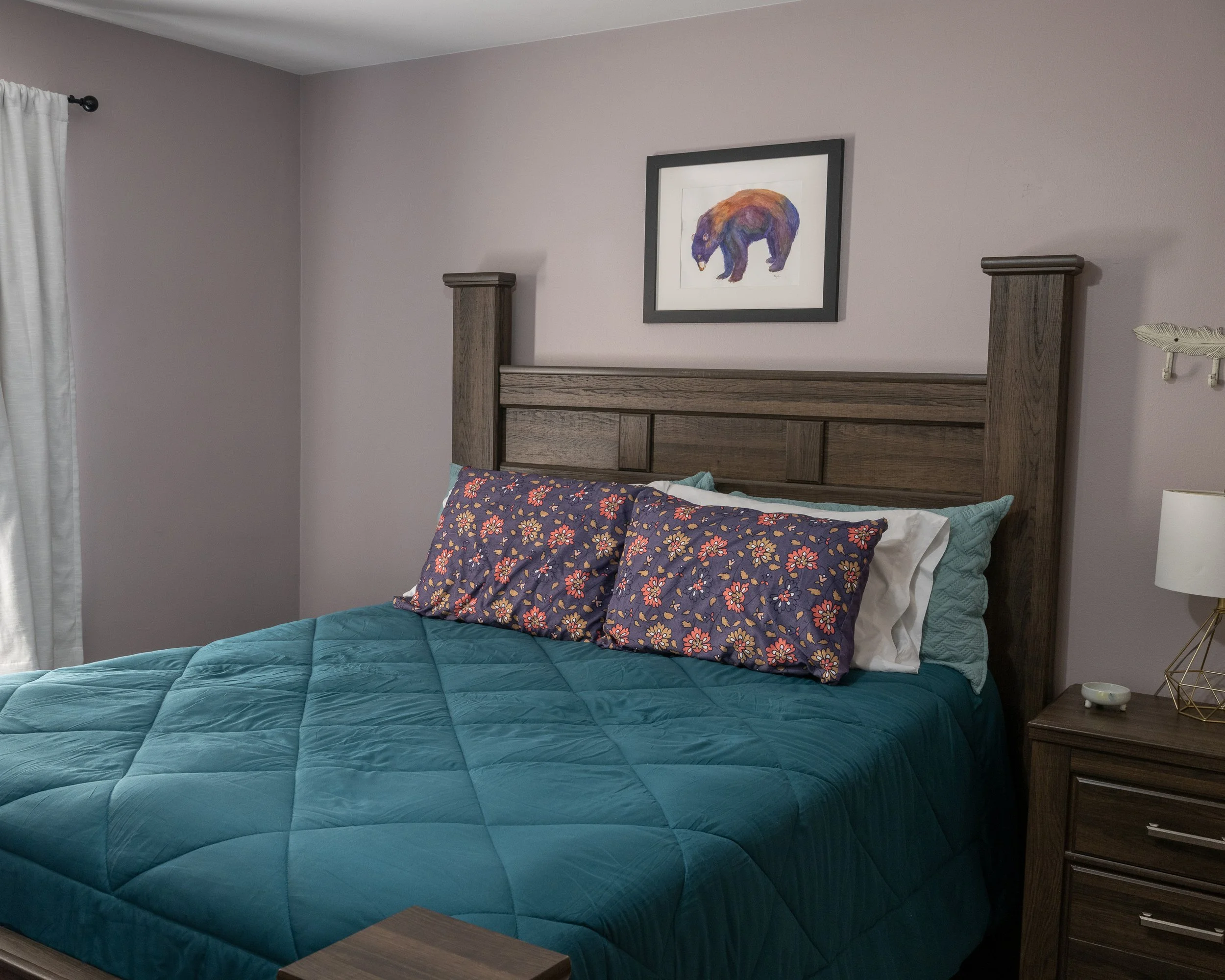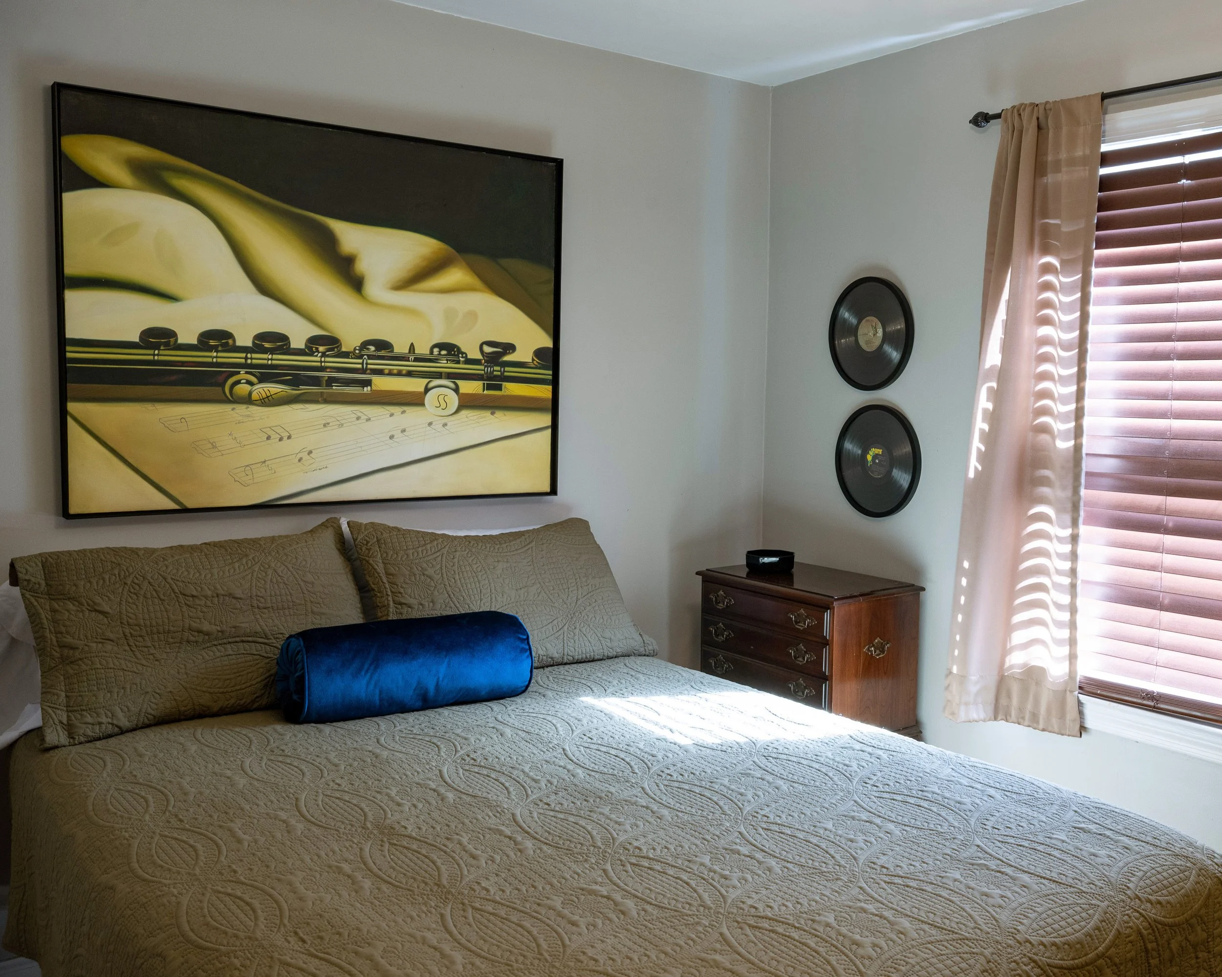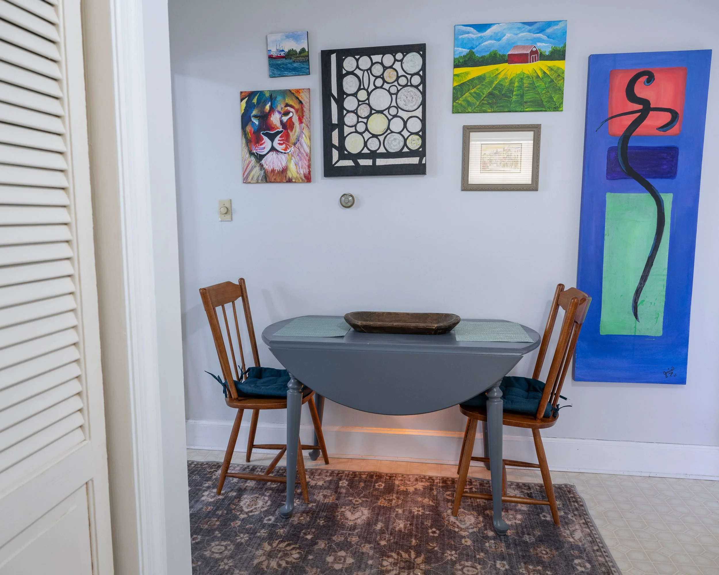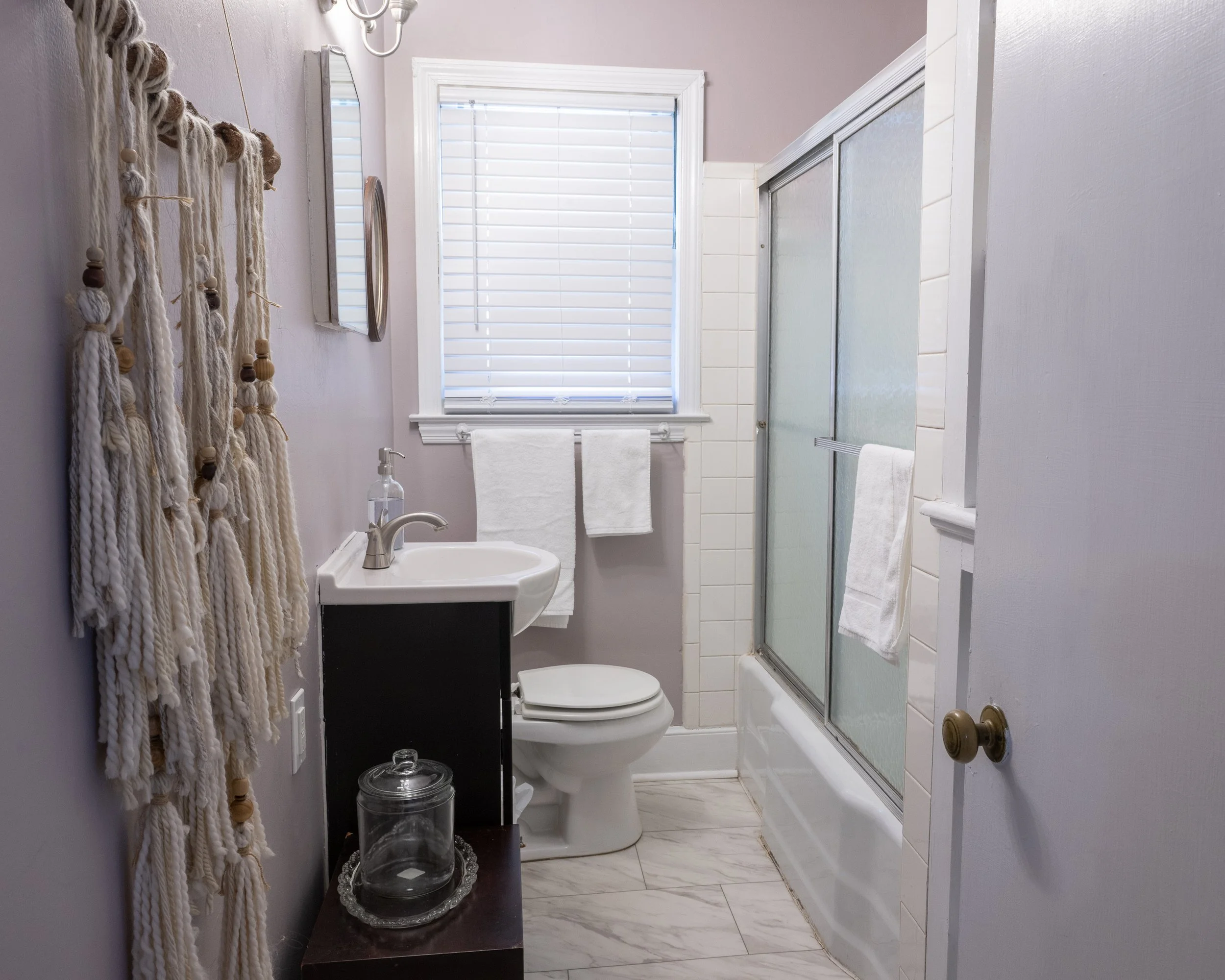 This 2 bed, 1 bath home is ideal for people with pets who like to relax after a long day. We hope you enjoy this living gallery filled with local art. The fenced yard is perfect size to give our furry guests freedom to roam.